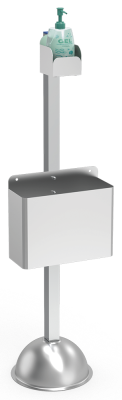 Dieser aus Edelstahl AISI 304 gefertigte Abfallbehälter ist so konzipiert, dass er an jeder unserer Säulen und Halterungen für hydroalkoholisches Gel befestigt werden kann: 064604, 064605, 064606 oder 064608; Möbel oder ein Satz Handschuh- und Beutelspender.